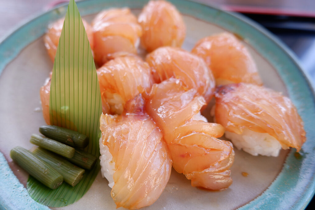 骑行结束后,当地美食是最好的奖励。“べっこう寿司(Bekko Sushi)”是代表性料理,将白身鱼(如鲷鱼、金枪鱼)用加入辣椒的酱油腌制,再搭配微甜醋饭,风味独特。