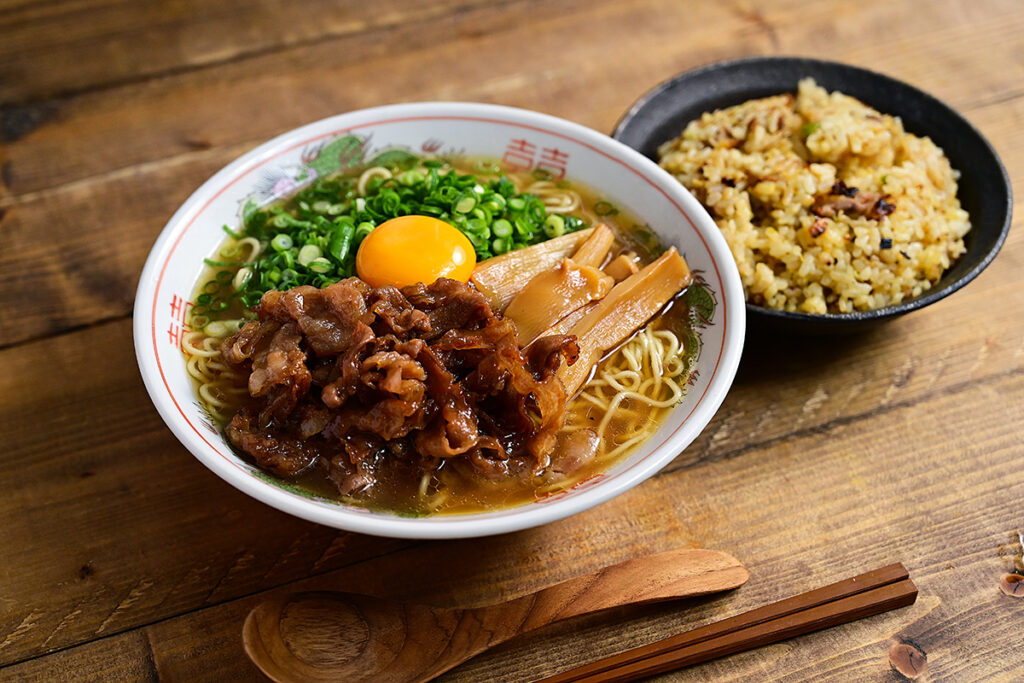 浓郁猪骨酱油汤底,加上甜咸炖煮五花肉与生鸡蛋,常搭配米饭食用。