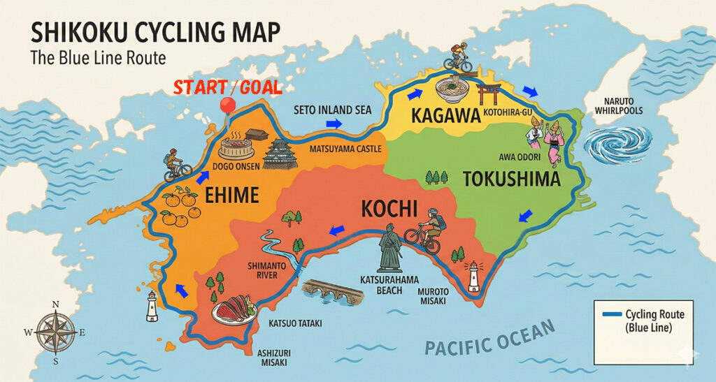 在日本四大主要岛屿之中,四国(Shikoku)面积最小,却蕴含最深厚的人文底蕴与旅途诗意。近年来,顺时针环绕整座岛屿的「四国一周骑行路线(1,000km Shikoku Circuit Route)」成为国际长途骑行者关注的挑战线路。为什么这条路线如此吸引人?答案藏在一段拥有 1,200 年历史的精神文化——「四国八十八所巡礼(Ohenro)」。