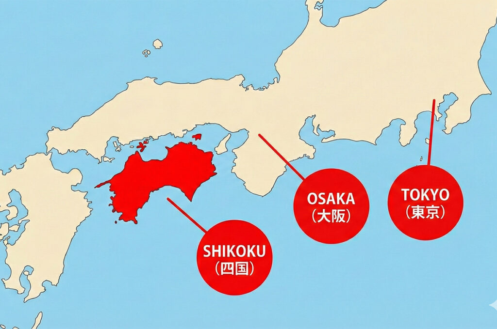 四国位于日本本州西南方,北临濑户内海,南接太平洋。