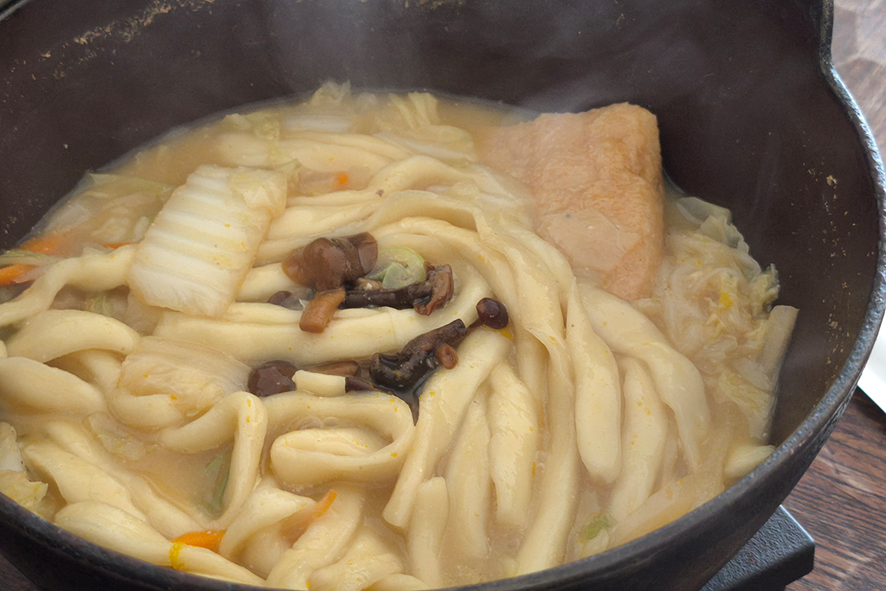 以味噌为基底,加入南瓜与大量蔬菜,是高热量且能暖身的料理。