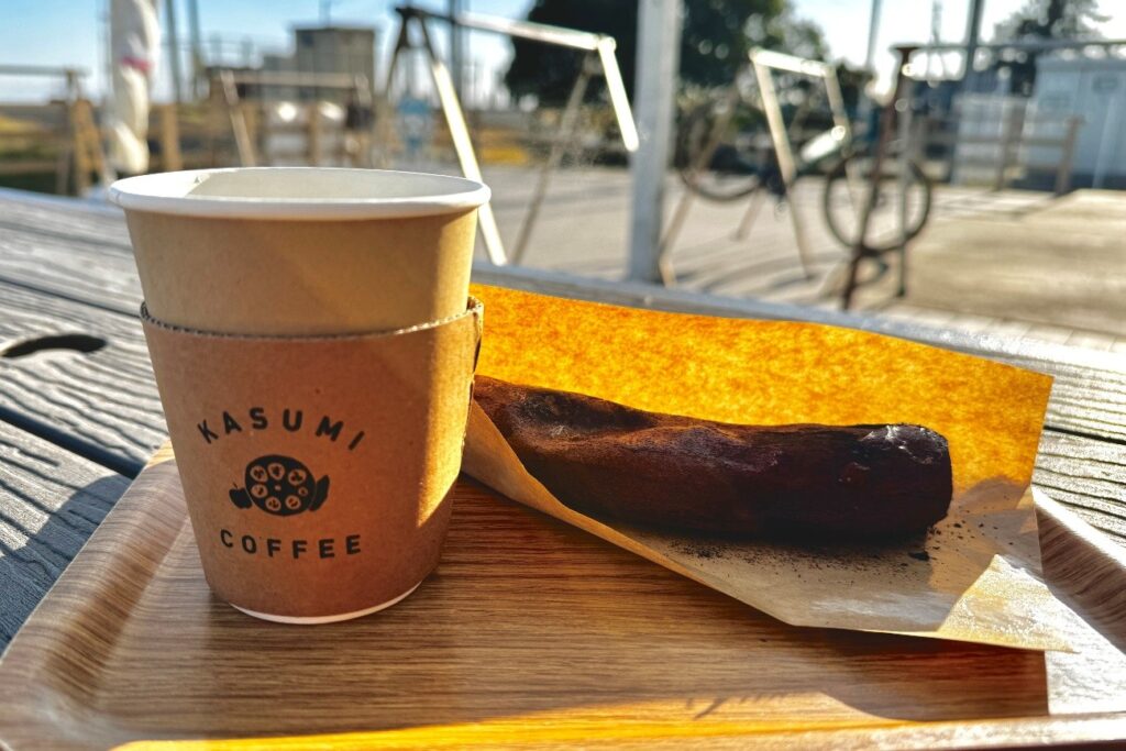 不久后便会抵达“畔之站 Kohan(霞浦市交流中心)”。这里设有自行车停放架与租赁服务,当地甜点尤为有名。使用本地红薯制作的烤红薯香甜绵密,是长距离骑行时理想的能量补给。