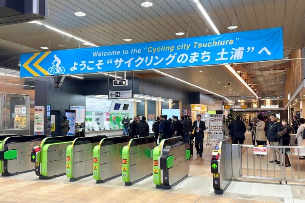 更令人印象深刻的是,土浦站本身就是为自行车骑行者量身打造的车站。从站台开始就设有清晰的自行车动线,提供专用的拆装车空间,并配备免费且可上锁的更衣室、付费淋浴间和储物柜。车站内还设有自行车商店与租赁服务。