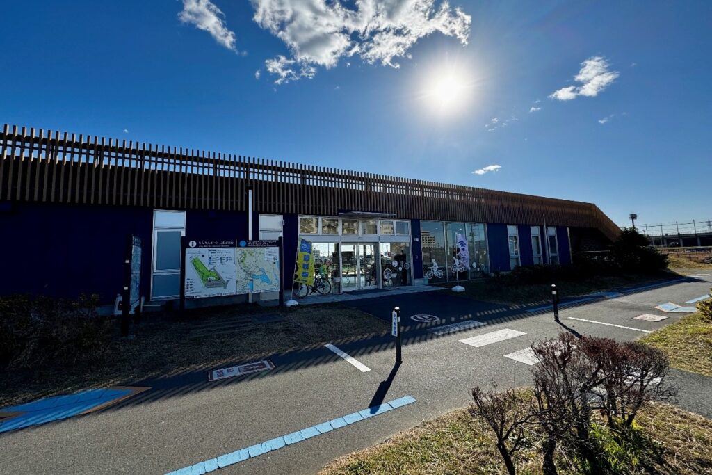 在正式出发前,许多骑行者会先前往 RinRin Port 土浦。这是一座位于湖畔、紧邻自行车路线的综合型骑行据点。