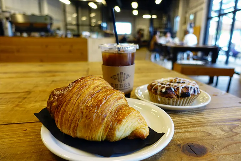 招牌自制可颂尺寸惊人,外酥内软,非常适合作为长距离前的能量补给。