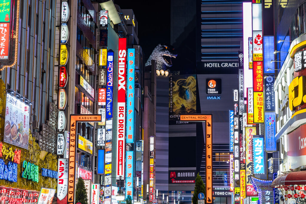 从静谧的官厅街,一下子进入灯火通明、昼夜不息的歌舞伎町。